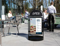 • EUROPEL Porte-visuel, 1/3 A4 portrait, socle alu