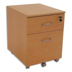 Caisson mobile Mélina 2 tiroirs L. 42 x P. 55,5 x H. 58,7 cm mélamine chêne clair – poignées métal gris aluminium