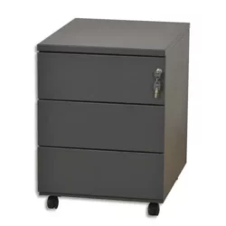Caisson mobile métal lisse noir L. 42 x P. 53,3 x H. 50,5 cm – top métal – 3 tiroirs plats