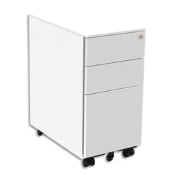 Caisson mobile métal lisse blanc L. 42 x P. 53,3 x H. 50,5 cm – top métal – 3 tiroirs plats