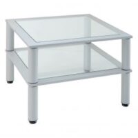 • Table Structure acier époxy gris. Plateau verre dépoli.