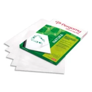• PERGAMY Conteneur ouverture dessus, couvercle attenant. Montage manuel. Kraft ondulé.Blanc imprimé rouge.