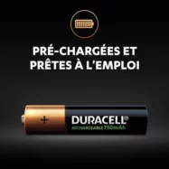 • DURACELL Piles Rechargeables AAA 750 Mah, lot de 4 piles