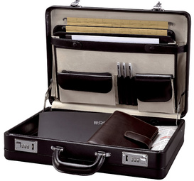 Alassio Attaché-case TAORMINA, cuir, noir – avec soufflet, organiseur A4 sur le rabat pour stylos, et documents et autres accessoires, 2 serrures à combinaison de chiffres dimensions extérieures: (L)450 x (P)111 x (H)325 mm (nouveau: 41033 / ancien: 41034) Jüscha