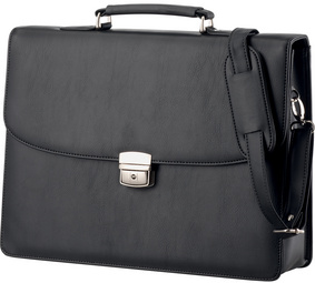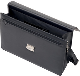 Alassio Porte-documents “ANZIO”, similicuir, noir – poignée, bandoulière amovible, serrure, compartiment externe avec fermeture à zip, compartiment principal, compartiment pour cartes de visite, 2 passants à stylos dimensions: (L)380 x (T)100 x (H)285 mm (47013)