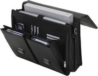 Alassio Porte-documents “VENETO”, cuir, noir – compartiment pour ordinateur portable, 2 serrures, bandoulière amovible, poignée, organiseur avec 3 passants stylos, poche pour téléphone portable, dimensions externes: extérieures: (L)417 x (P)150 x (H)315 mm dimensions compartiment pour ordinateur portable: (47117) (L)350 x (P)45 x (H)240 mm