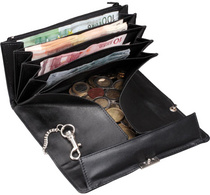 Alassio Portefeuille de serveur, en cuir nappa, noir – 6 compartiments pour billets, compartiment pour monnaie, compartiment à fermeture à zip, poche de rangement au dos, serrure réglable à 3 niveaux, chaînette en métal avec mousqueton, dimensions: (L)185 x (H)95 mm (42080)