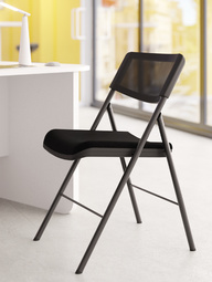 ALBA Chaise pliante DIVANO, noir – assise en mousse renforcée (30 kg/m3), dossier filet ergonomique, structure en acier noir, capacité de charge: 110 kg, pliable en paquet de 2 pièces (CPDIVANO N)