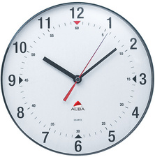 ALBA Horloge murale HORCLAS, montre à quartz, noir – diamètre: 250 mm, matière du boîtier: plastique, alimentation par pile: 1 x AA (non fournie), fond d’écran blanc, aiguilles des minutes et des secondes (HORCLAS)