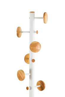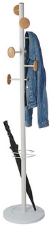 ALBA Portemanteau “MUSIC”, (H)1.750 mm, blanc – avec 6 patères & 3 mini patères, en bois clair et acier, montage sans outils, diamètre du socle: 355 mm, socle lourd pour une stabilité optimale, porte-parapluies avec socle de récupération d’eau, poids du socle: 5 kg (PMMUSIC BC)