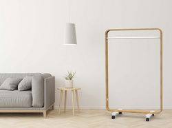 ALBA Vestiaire “BOX”, mobile, (H)1.550 mm, bois / blanc – design épuré, combine bois et métal, avec 4 roues dont 2 avec freins, pratique et robuste, avec une grande barre d’accroche pour jusqu’à 30 vêtements, dimensions: (L)1