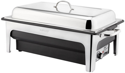 APS Chafing dish électrique, 630 x 360 x 290 mm – en acier inoxydable / PP, récipient GN 1/1-100 mm, support de couvercle, réglage du thermostat 900 W, 230 V (12225) fiche de courant avec terre – pour CH adaptateur fixe inclus
