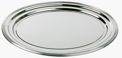 APS Plat de service CLASSIC, (L)460 x (P)340 mm, argent – en métal,nickelé et chromé brillant, avec lignes décoratives bord roulé, ovale (398)