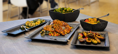 APS Plateau FROSTFIRE, (L)530 x (P)162 mm, argent-noir – en aluminium, revêtement anti-adhésif, conduit et stocke la chaleur aussi bien que le froid, lavable au lave-vaisselle, supporte des températures entre -30 et 200 degrés, (H)30 mm (30502)