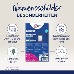 AVERY Pochette badge XL, en carton, 105 x 148 mm – pochette badge en carton kraft et plastique, A6, étiquette: 190 g/m2, blanc, mat, imprimable, contenu: 50 pochettes badges et 13 feuilles de 4 étiquettes (4839XL)