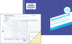 -/Regiebericht 1780: A4, selbstdurchschreibend, 2×40 Blatt, weiß/gelb, alle Blätter gelocht, mit Mikroperforation Wochenbericht 1311: A5 quer, mit Blaupapier, 2×50 Blatt, weiß/gelb, alle Blätter gelocht, mit Mikroperforation Wochenbericht 1772: A5 quer, selbstdurchschreibend, 2×40 Blatt, weiß/gelb, alle Blätter gelocht, mit Mikroperforation Wochenrapport 1310: A5 quer, mit Blaupapier, 100 Blatt, weiß, alle Blätter gelocht, mit Mikroperforation