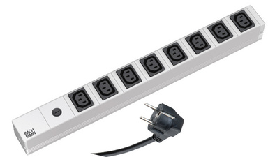 ————– pour le marché: D / F / NL / A / L ———- pour le montage dans une baie 19″ – 1 U (44 mm) prises 3 broches, IEC 320, 10 A, 2300 Watt, avec fusible 10A et câble de connexion muni d’u