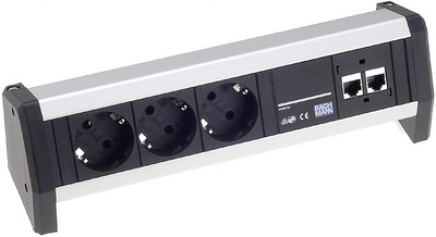 Steckdoseneinheit “DESK 1”, 4-fach Die Tisch-Steckdoseneinheit mit zwei vorkonfigurierten Netzwerkanschlüssen
