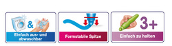 • s’enlève facilement sur les mains et textiles avec de l’eau froide et du savon