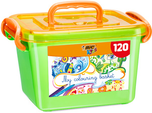 BIC KIDS Kit de dessin dans une caisse, 120 pièces – 120 pièces, contenu: 60 crayons de couleur Tropicolors, 60 feutres Couleur, couvercle en orange avec poignée de transport, boîte en vert, pourles enfants de 3 à 10 ans, dimensions: (L)225 x (P)163 x (H)132 mm (9484262)