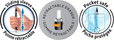 • gomme rétractable intégrée
