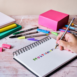 • encre indélébile: bleu, noir, rouge, turquoise et lilas