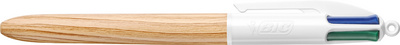 BIC Stylo à bille rétractable 4Colours Wood Style – largeur de tracé: 0,32 mm, couleurs de tracé: bleu, rouge, vert et noir, poussoir de la couleur du tracé, corps rond, avec clip, corps au design aspect bois naturel (508964) stylo quatre couleurs