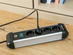 brennenstuhl Steckdosenleiste Premium-Alu-Line, 4-fach – ————– für den Markt: D / L / A / NL ————— Kabellänge: 3 m, mit Schalter, Gehäuse aus Aluminium, Steckdosen in 45 Grad Anordnung, erhöhter Berührungsschutz, 4 Schutzkontakt-Steckdosen, 230 V, Länge Leiste: 330 mm (1391030400)