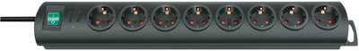brennenstuhl Steckdosenleiste “Primera-Line”, 8-fach,schwarz – ————- für den Markt: D / NL / A / L —————- Leuchtschalter, aus bruchfestem Kunststoff, Länge Steckdosenleiste: 510 mm, Kabellänge: 2,0 m, Steckdosen mit Kinderschutz in 90 Grad-Anordnung, Kabelfach (1153300128) Kabelausgang variabel auf beiden Seiten möglich, Wandmontage möglich dank Befestigungsösen