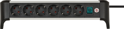 brennenstuhl Tisch-Steckdosenleiste Alu-Office-Line, 6-fach – ————– für den Markt: D / NL / A / L ————— Kabelllänge: 3,0 m, schlankes Design, Aluminium mit matt eloxierter Oberfläche, Schutzkontakt-Steckdosen in 45 Grad Anordnung, Schalter beleuchtet, Länge: 385 mm (1391040600) Farbe: silber / schwarz