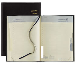 brepols Agenda journalier “EURO”, 148 x 210 mm, 2026, noir – 1 jour par page, 416 pages, papier chamois 80 g/m2, avec encoches mensuelles, sextilingue, coins perforés, signet, couverture capitonnée similicuir Lima, noir (0