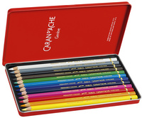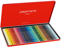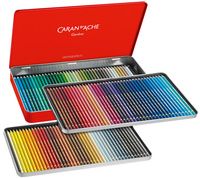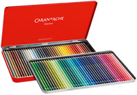 CARAN D’ACHE Crayons de couleur PABLO, étui métal de 18 – en bois de cèdre, corps hexagonal, épaisseur de mine: 3,8 mm soluble à l’eau, mine dure, excellente tenue à la lumière contenu: 18 crayons (666