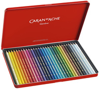 CARAN D’ACHE Crayons de couleur SUPRACOLOR, étui métal de 18 – crayons de couleur aquarellables pour artistes, mine tendre, en bois de cèdre, corps hexagonal, épaisseur de mine: 3,8 mm contenu: 18 crayons (3888
