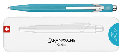 CARAN D’ACHE Stylo à bille 849 Colormat-X, vert – largeur de tracé: M, couleur de tracé: bleu, corps hexagonal en aluminium, clip flexible en métal, mécanisme rétractable, dans un étui métal extra plat, fermeture magnétique, finition satinée premium, rechargeable avec la mine Goliath (849