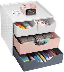 CEP Mini module de rangement MyCube mineral, rose poudré – 4 tiroirs, n polystyrène 100% recyclable, 2 compartiments larges, 2 compartiments étroits, avec butées d’arrêt, poignées ergonomiques, avec patins en caoutchouc, dimensions: (L)185 x (P)185 x (H)175 mm (3-211 / 1032111681) boîtier: blanc, tiroirs: blanc/gris/rose poudré