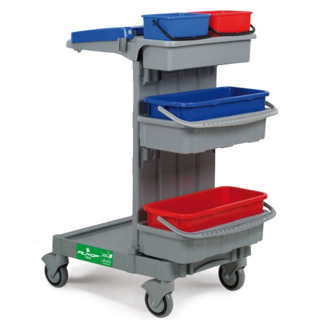 Le chariot Alpha 1111 est un chariot polyvalent, pour les opérations de dépoussiérage, le nettoyage des surfaces hautes, le lavage et/ou la désinfection des sols, avec seaux pour imprégnation “en amont” des franges. Il est adapté pour le nettoyage des moyennes et grandes surfaces.