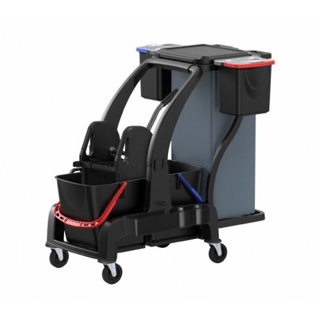 Le chariot de lavage – ménage BLACK est compact et maniable pour le ménage et le lavage. Il permet de réaliser le nettoyage des sols avec le protocole de lavage à plat, avec presse. Le chariot est muni d’une poignée ergonomique pour le manier aisément.