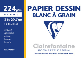 Clairefontaine Papier dessin “Blanc à Grain”, 210 x 297 mm – 180 g/m2, blanc, en pochette contenu: 12 feuilles (96155C)