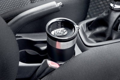 • gobelet en acier inoxydable à double paroi et couvercle avec ouverture pour boire (capacité de 400 ml)