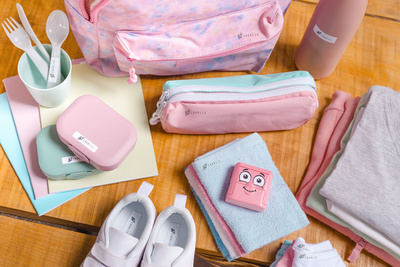 – grâce aux étiquettes, convient également aux surfaces non absorbantes telles que les gourdes, les boîtes à goûter, les stylos, les trousses, etc.