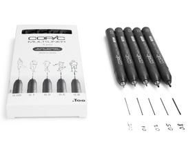 COPIC Feutre fin MULTILINER, set de 5, noir – encre pigmentée sans acide, ne s’efface pas, ne s’estompe pas, pour esquisses et dessins, assorti en 5 épaisseurs de trait: 0,05 / 0,1 / 0,3 / 0,5 / 0,8 mm contenu: 5 Multiliner (22075635)