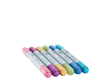 COPIC Marqueur ciao, kit de 6 “Pastels” – le marqueur pour maquettes, esquisses et illustrer, avec 2 pointes: 1 pointe médium + 1 pointe pinceau, encre à base d’alcool, sèche rapidement, mélangeable contenu: 6 marqueurs (22075667) assorti dans les couleurs: RV21, V04, Y21, YG11, B23, BG15