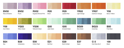 COPIC Marqueur ciao, set de 24 – encre à base d’alcool, séchage rapide, couleurs miscibles entre elles, rechargeable avec les encres Various Ink, contenu : 24 marqueurs de couleurs assorties (22075524) E00/E21/E29/E37/C-3/100/G05/BG09/BG23/B00/B24/B29/YR07/ Y00/Y08/YG03/YG06/G00/BV00/BV02/RV02/R20/R29/YR02