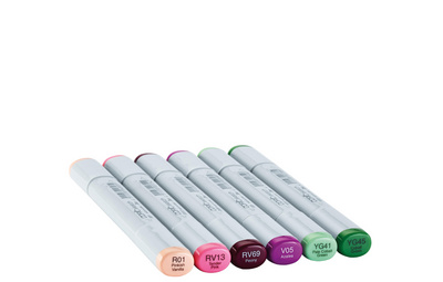 COPIC Marqueur sketch, kit de 6 “Floral Favorites 1” – encre à base d’alcool, sèche rapidement, mélangeables, rechargeable avec les encres de recharge Various Ink contenu: 6 marqueurs (21075668) assorti dans les couleurs: R01, RV13, RV69, V05, YG41, YG45