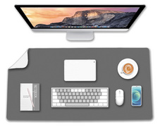 deflecto Sous-main, 800 x 400 mm, gris/blanc – en simili-cuir flexible, double face et réversible, avec deux couleurs différentes, antidérapant et imperméable (DM8040GW)