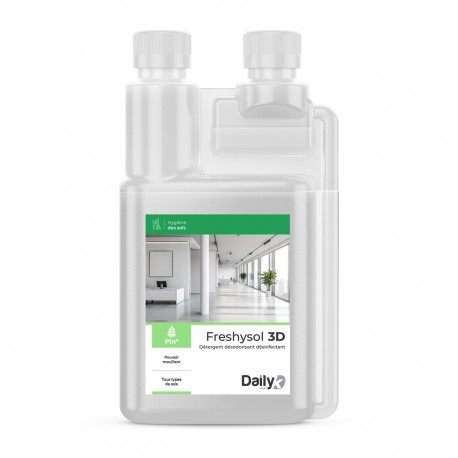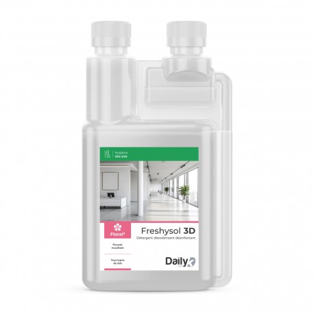 Freshysol 3D est un détergent pour tous types de sols et surfaces lavables. Il a une triple action, c’est un détergent, dégraissant, désodorisant avec agent bactéricide. Fabriqué en France.