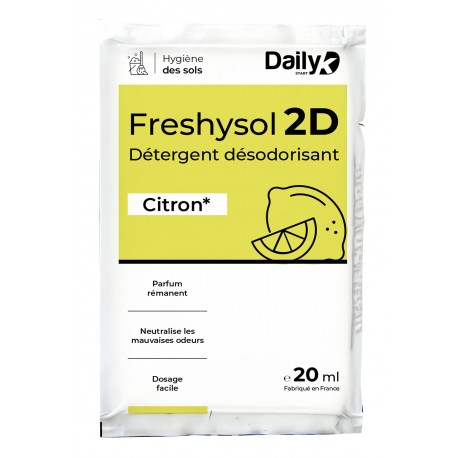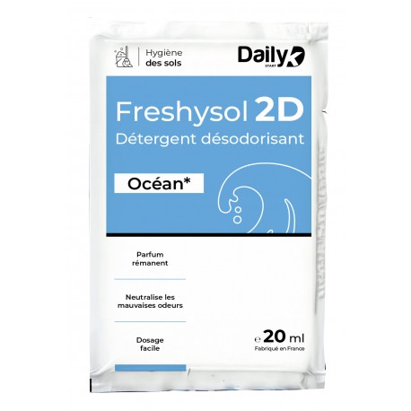Détergent désodorisant concentré pour le nettoyage des sols et surfaces non protégées. Son usage ne laisse pas subsister de traces et son parfum frais contribue à donner une meilleure sensation de propre sur sols dallés ou carrelés, sols plastiques et surfaces peintes, action mécanique et manuelle. Produit fabriqué en France.