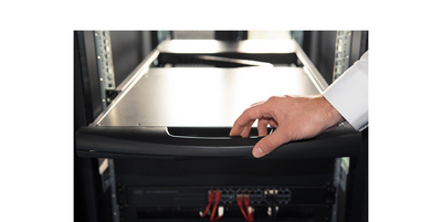 • die Konsole kann komplett aus dem Serverschrank herausgezogen weden und der TFT-Bildschirm kann um 120 Grad gedreht werden.