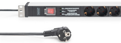 19″ Steckdosenleiste, 1 HE, 5-fach mit Schalter, Überspannungsschutz und Netzfilter