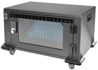 pour tablettes de 35,56 cm (14″) max., 16 ports USB-C, serrure électronique à combinaison avec code PIN, boîtier métallique, porte en verre de sécurité, 4 roulettes, interrupteur marche/arrêt, dim.: (